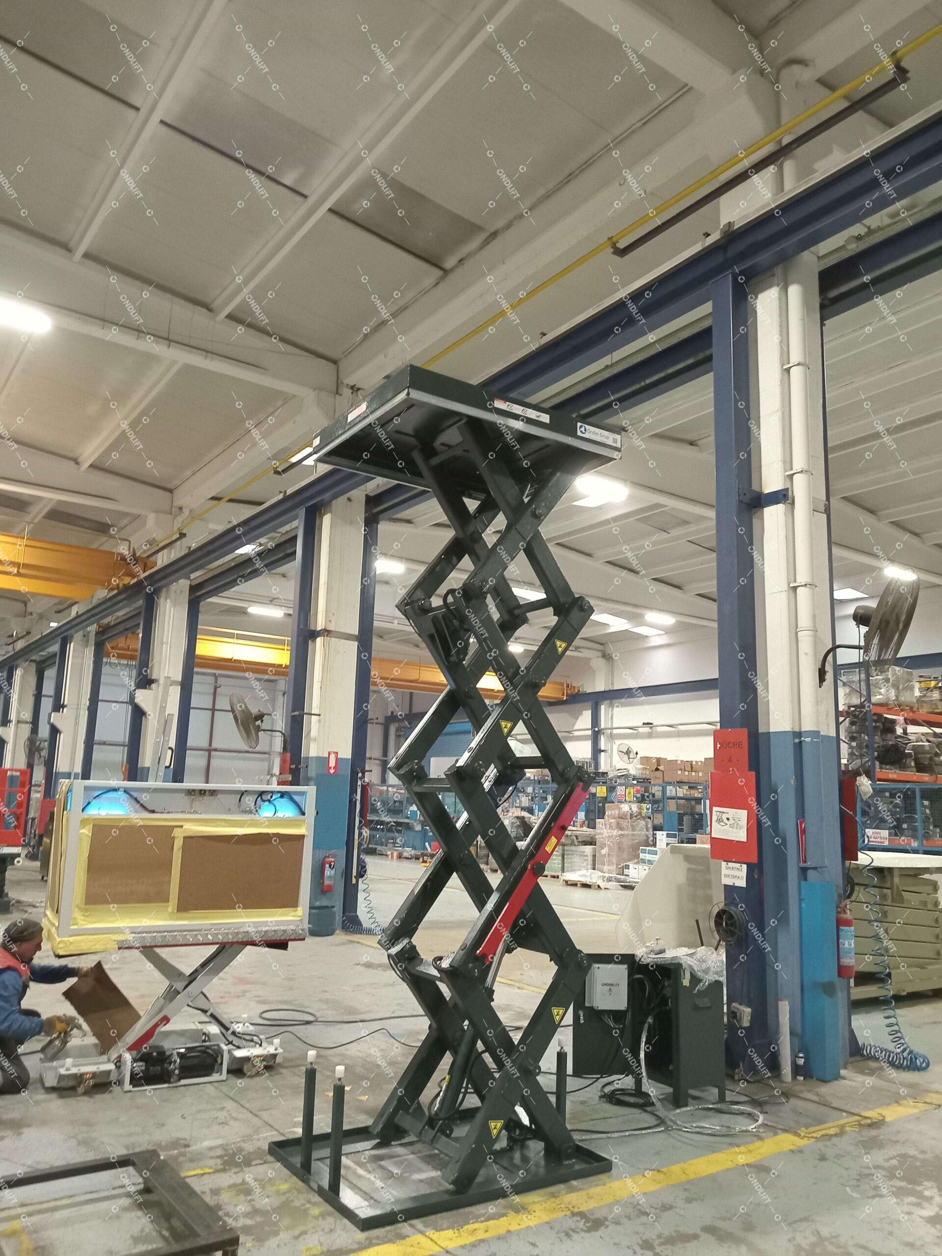 Ond Lift Germany lieferte einen Vierfach-Scherenhubtisch, der speziell für industrielle Prozesse entwickelt wurde, bei denen Bauteile oder Materialien sicher und präzise auf große Höhen angehoben werden müssen. Mit einem Hubweg von 3150 mm und einer Plattform von nur 1350 × 1100 mm bietet dieser Hubtisch maximale Hubhöhe auf minimalem Raum.